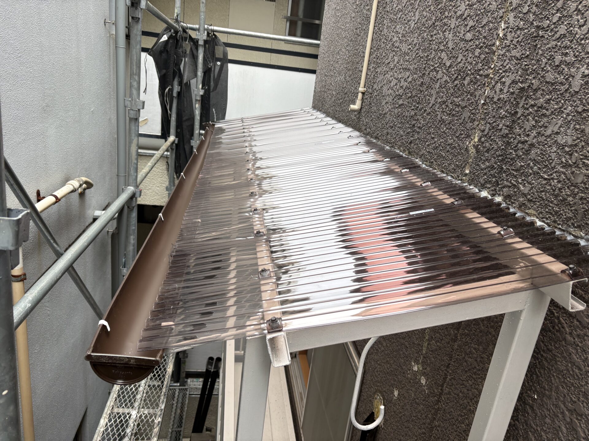 住宅メンテナンス、波板交換、雨樋交換、鉄骨ベランダ塗装、仮説足場、練馬区高野台T様邸、火災保険サポート