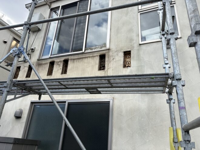 住宅塗装、メンテナンス、ウットデッキ撤去工事、左官補修、ジョリパット仕上げ、仮説足場、練馬区豊玉南、G様邸