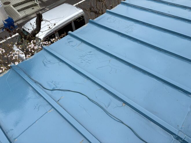 住宅屋根、瓦棒塗膜、剝がれ、割れ、屋根カバー工法メンテナンス、練馬区桜台O様邸