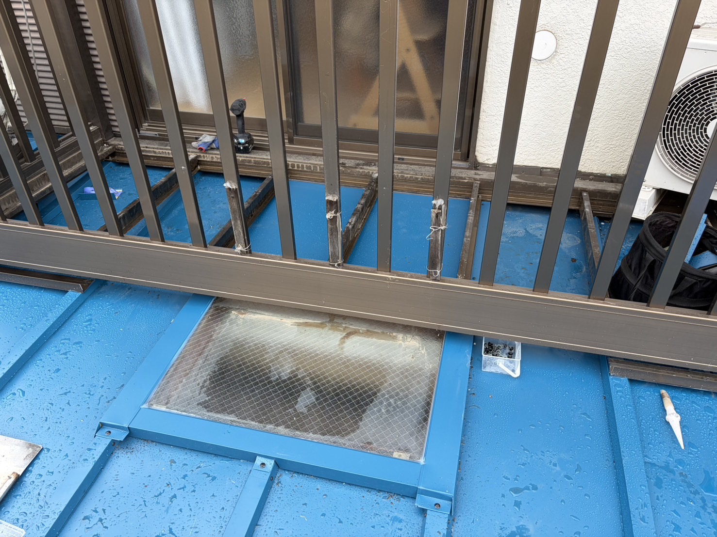 カバー工法の作業に入る前にまず屋根上に設置されたベランダデッキを全て外しました。